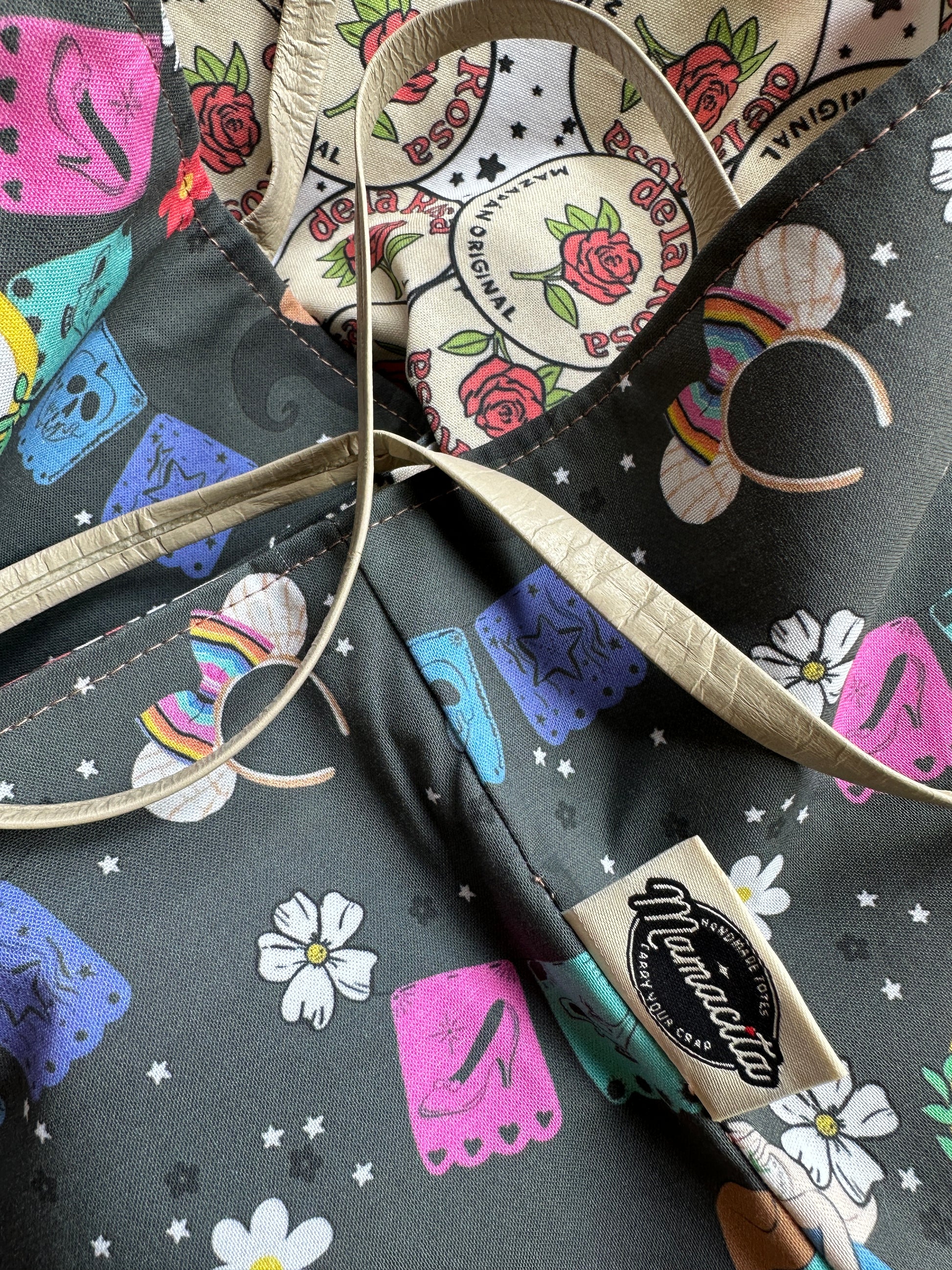 Flip it inside out, and BAM—you’ve got a full-on La Rosa de Mazapán candy explosion! The reversible interior showcases the iconic Mexican sweet in a playful all-over print, making this bag twice as fun and totally eye-catching.