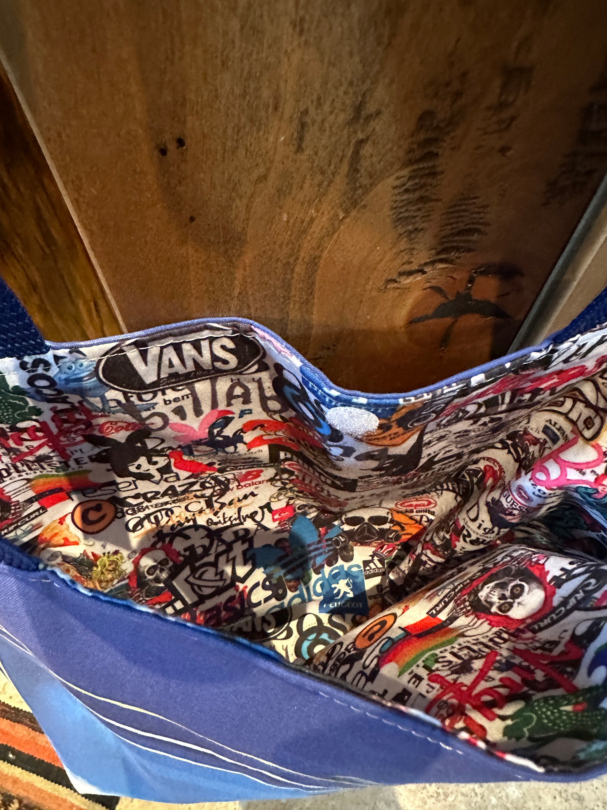 Reversible — flip it inside out to reveal the graffiti-style interior, totally giving “skater binder vibes” from back in the day